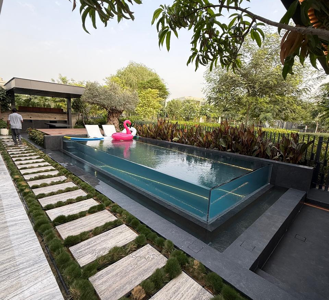 Glass wall pools create a sleek, sophisticated statement piece, offering a unique visual connection between your pool and the surrounding space. Their transparent design is ideal for stylish, contemporary outdoor living.