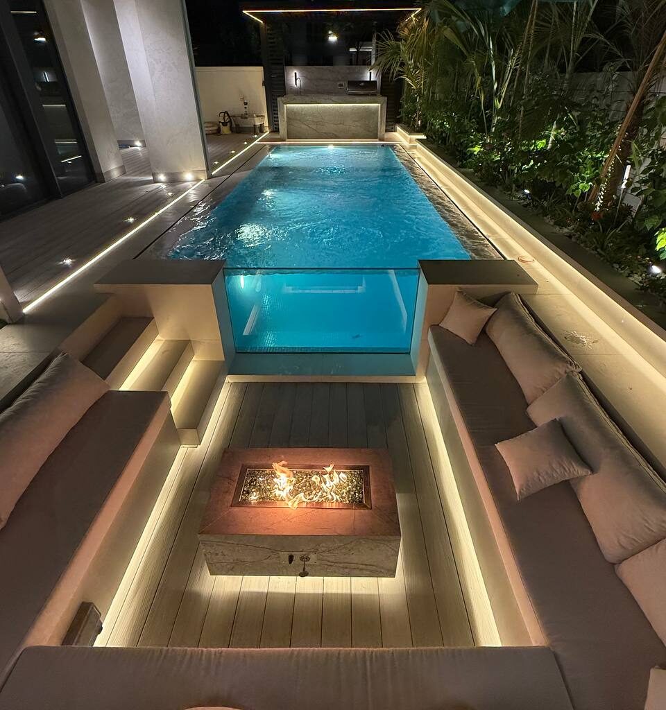 Add a striking architectural feature with crystal-clear walls that showcase the water and elevate your outdoor design. Perfect for modern homes and luxury entertainment spaces.